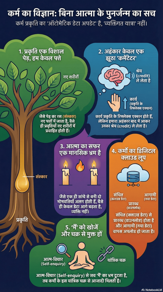 कर्म और पुनर्जन्म का यांत्रिक विज्ञान: बिना आत्मा का सफर